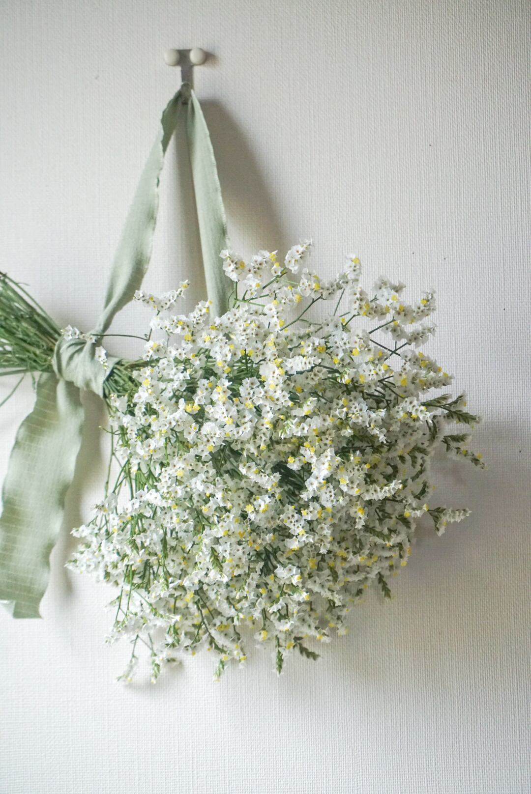 ハイブリッドスターチスの白い小花をまるっと束ねました♡