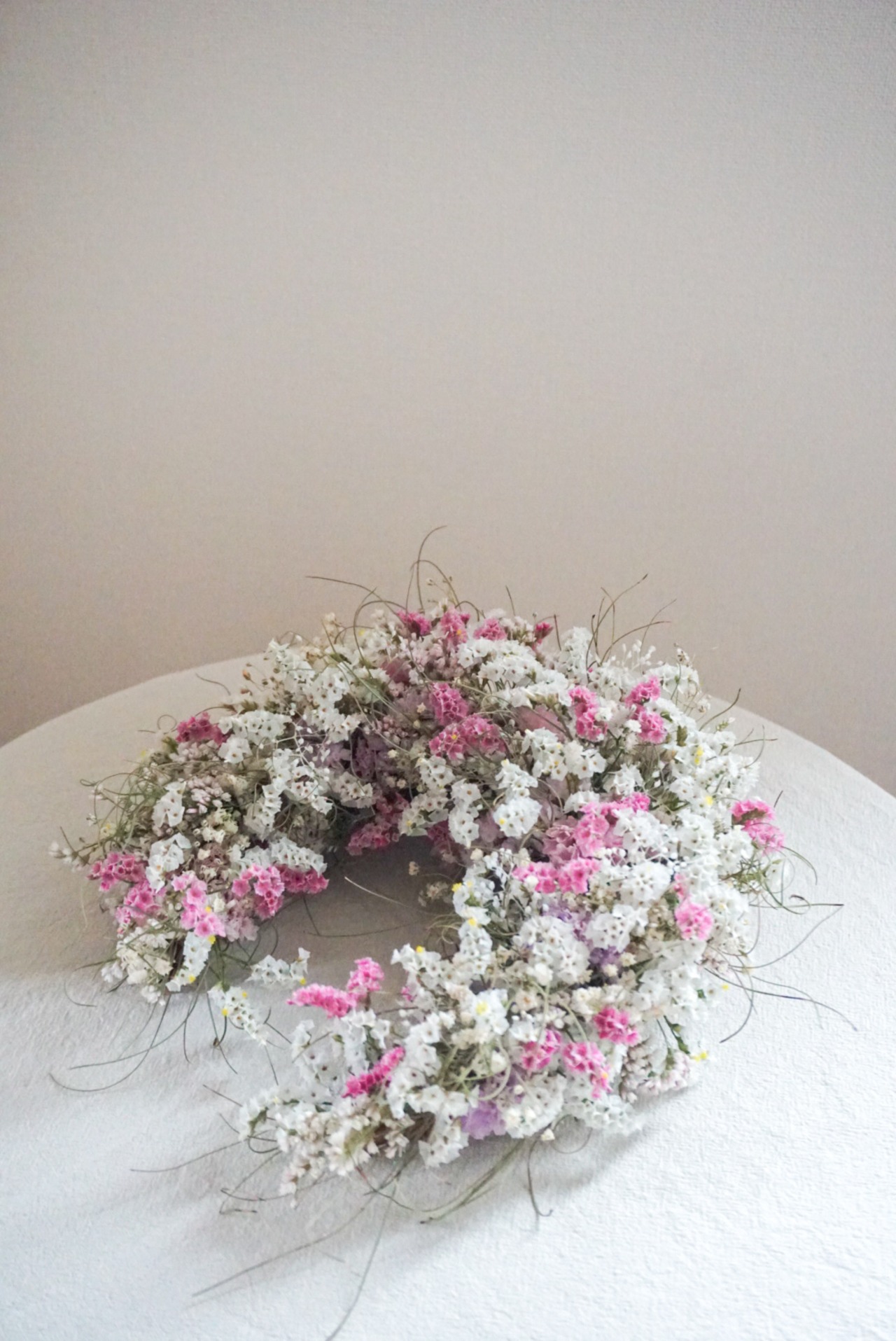 見るたびに気持ちがほぐれるようなやさしい雰囲気に仕上がるよう、何度も何度もたくさんの小花を重ねてお作りしました.