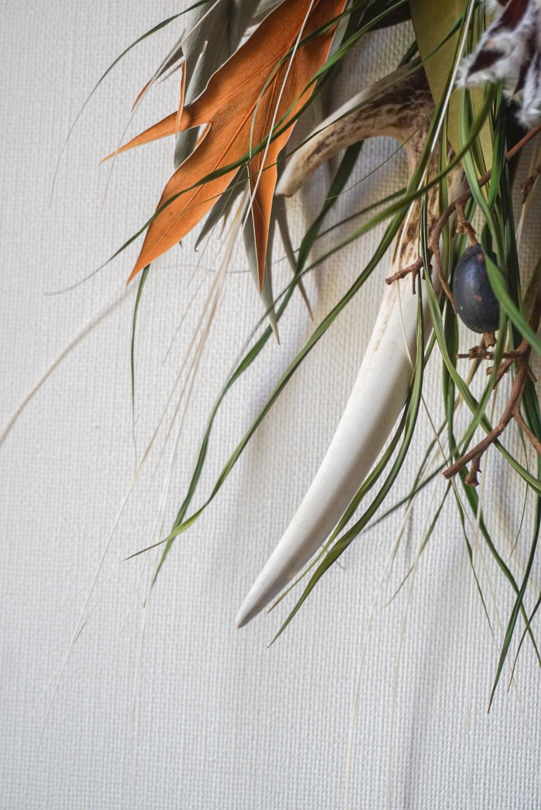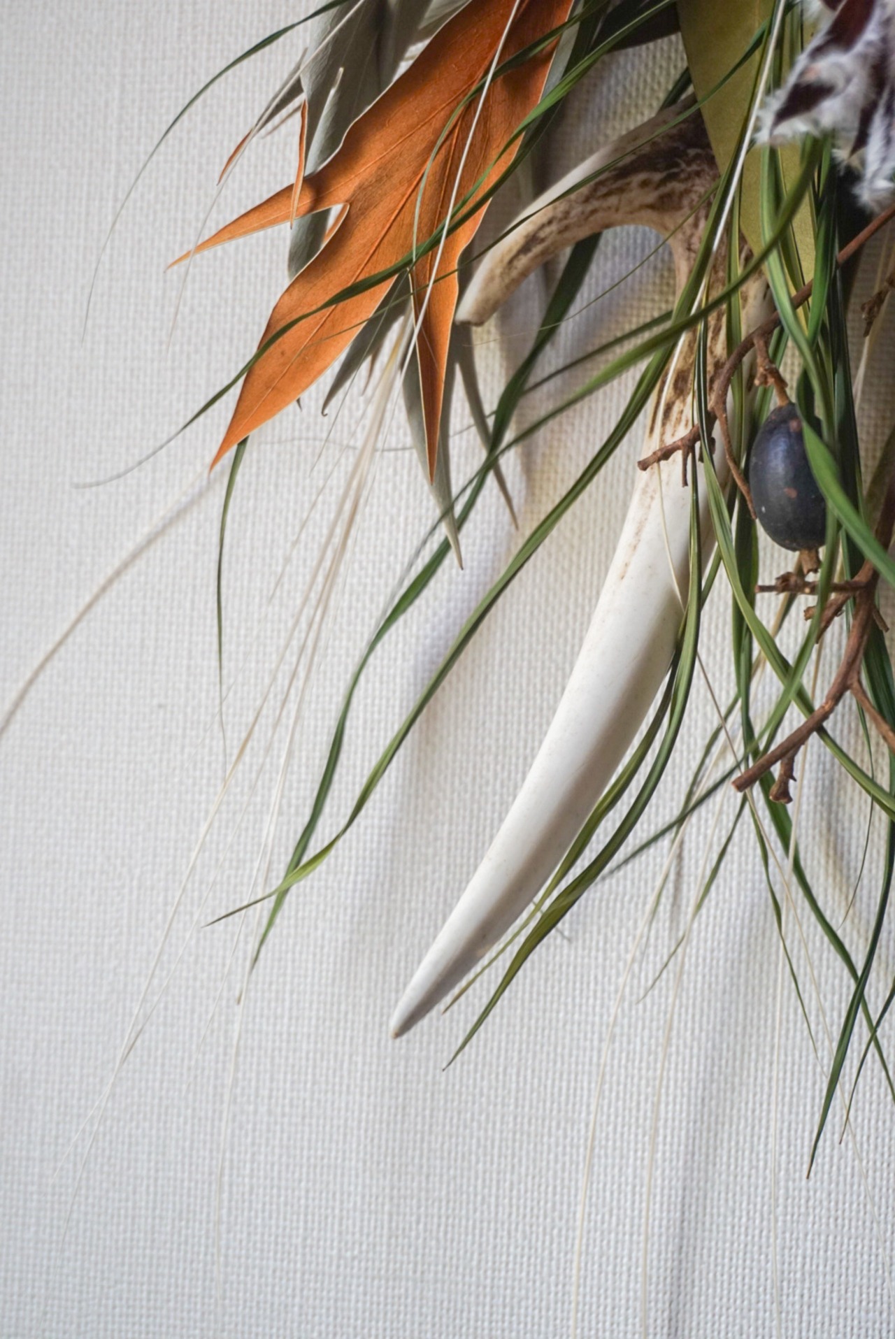 プロテアをメインにたくさんのネイティブフラワーと魔除けや勝負運などの縁起物とされる鹿の角を、ざっくりと束ねたワイルドすぎるswagが仕上がりました.